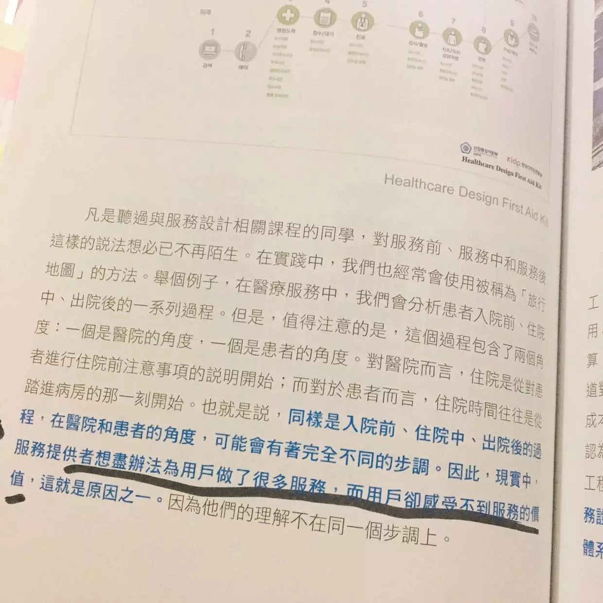 那是因为,服务设计者与用户对服务的理解,不在一个调上。举个例子,患者去医院住院这件事,就很容易包含了2个调子。就医院而言,住院是从对患者进行住院前注意事项的说明开始;对患者而言,住院时间是从踏入病房那一刻开始。这就是:同一件事,关于步调的2个理解。