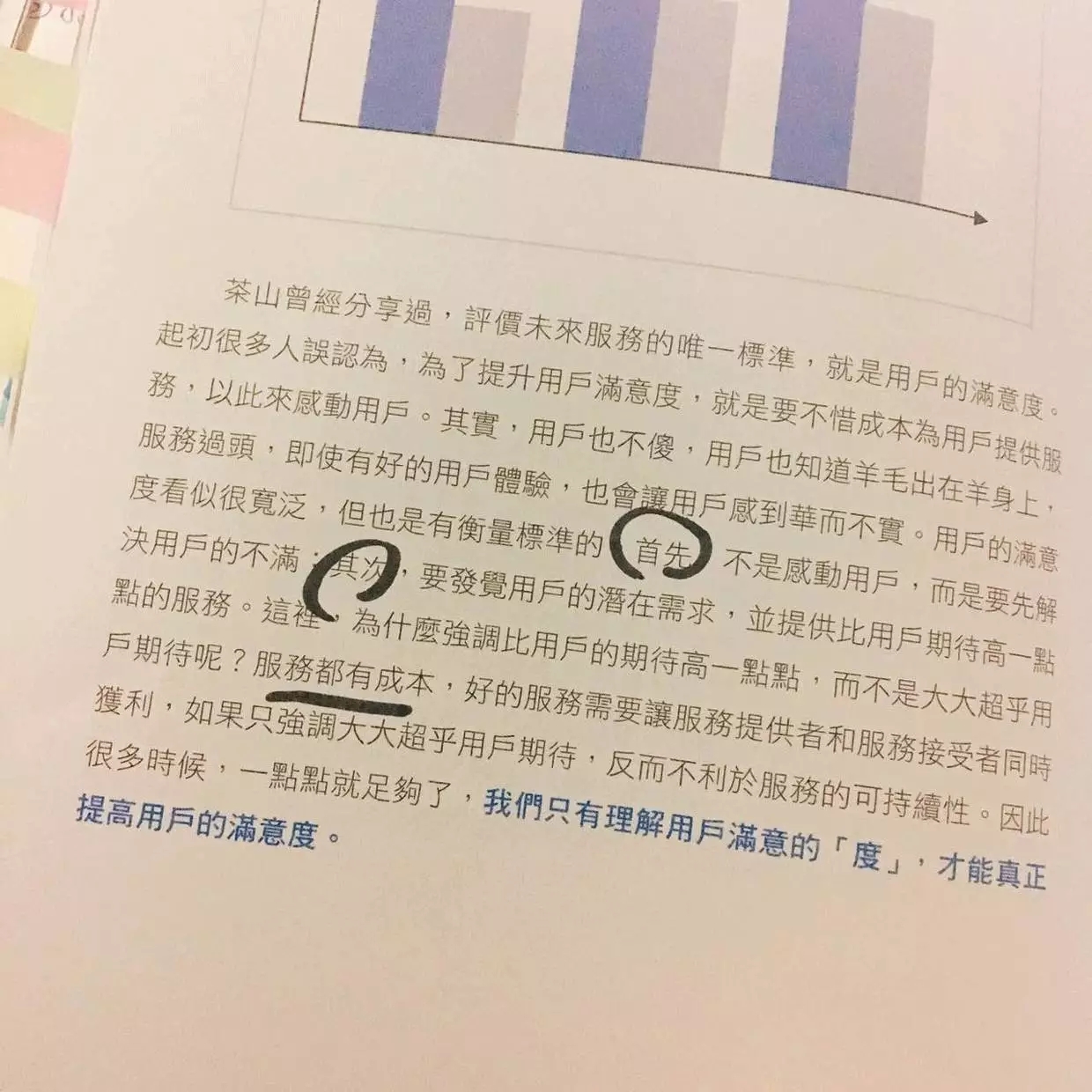 7,好的服务有个基本姿态:向用户承认自己的不足,争取用户理解的同时,积极的回馈用户。(P73)