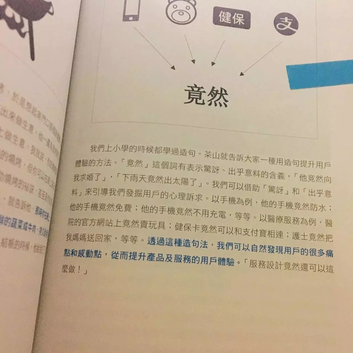 18,学会用“竟然”造句。透过这种造句法,我们可以发现用户的很多痛点,从而提升产品及服务的用户体验。(P185)