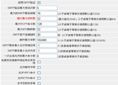 · 限定SMTP最大邮件体积,避免大附件攻击。