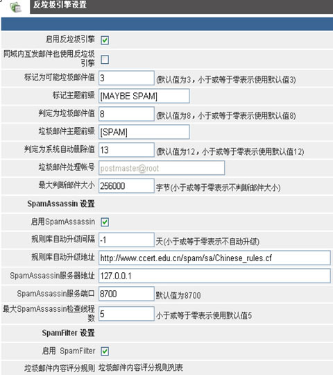 · 支持内部同域用户之间发信的垃圾邮件判定。