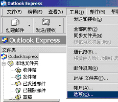 ② 回到OE主窗口,选择菜单“工具”→“选项”,以打开“选项”对话框。