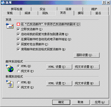这是中策。默认情况下,Outlook Express将已发出邮件的副本保存在“已发送邮件” 文件夹中。如果停止使用自动保存邮件副本,只要在撰写邮件时将自己的电子邮件地址放在 “抄送”框中,则仍然可以保存一份邮件副本。为了节省磁盘空间,首先可以在Outlook Express主窗口中单击【工具】——〉【选项】,出现“选项”对话框,再选择“发送”标签,在“发送”组中,清除“在‘已发送邮件’中保存已发送邮件的副本”复选框中的对钩标记,最后再单击“应用”按钮和“确定”按钮即可。