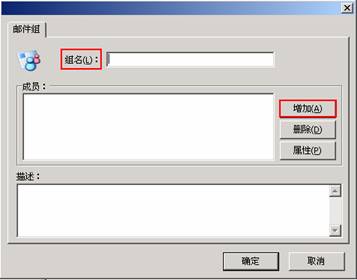 打开"邮件组"对话框,在其中的"组名"栏中输入"组"的名称